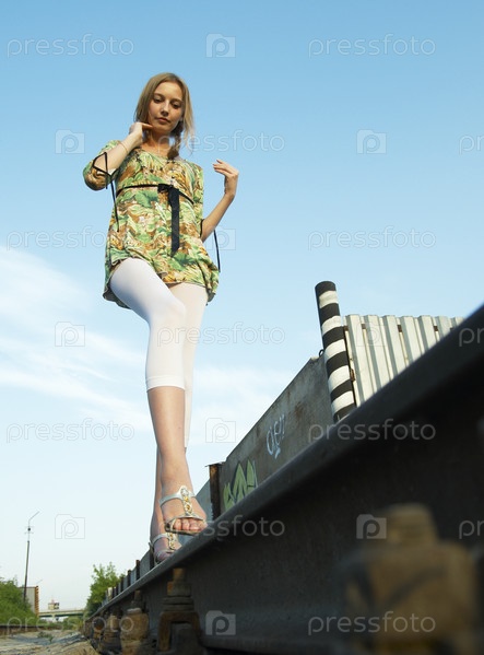 Молодая женщина на железной дороге