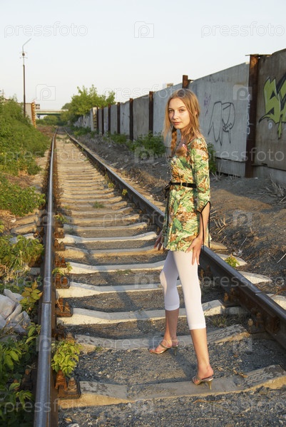 Молодая женщина на железной дороге