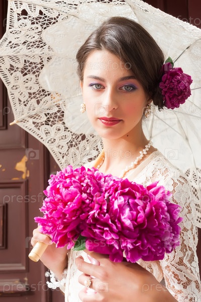 Красивая молодая женщина с цветами