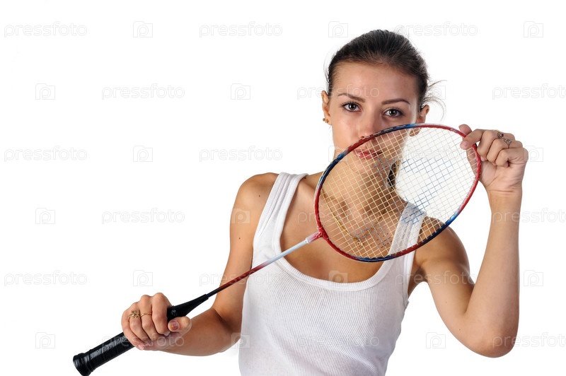 Красивая девушка с ракеткой для бадминтона в руках