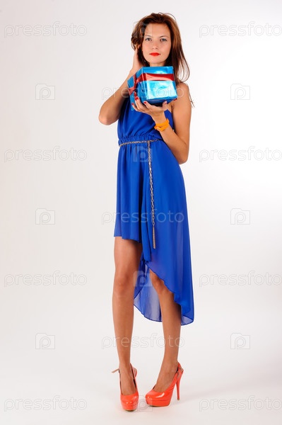 Портрет молодой привлекательной женщины с подарком