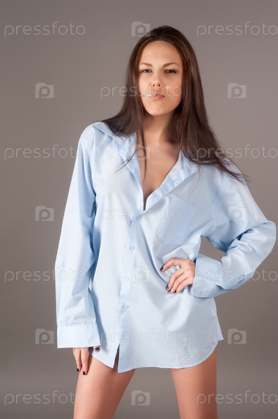 Привлекательная брюнетка с сигаретой на сером фоне
