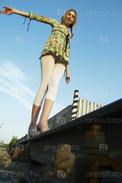 Молодая женщина на железной дороге