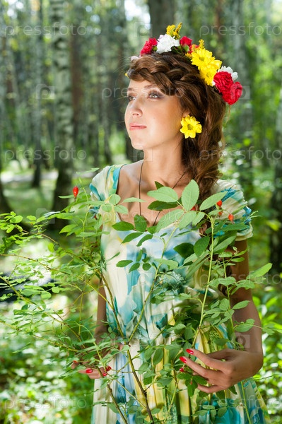 Портрет красивой женщины с венком из цветов. Естественная красота
