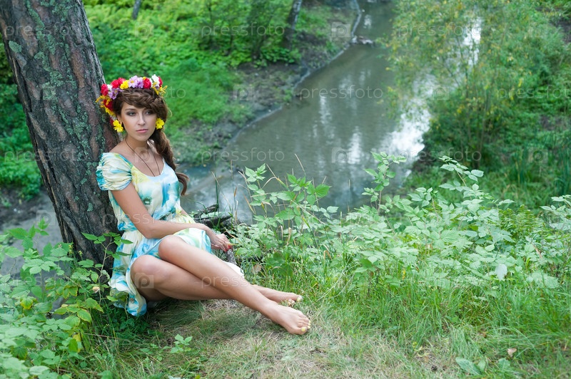 Привлекательный женский портрет с венком из цветов. Естественная красота