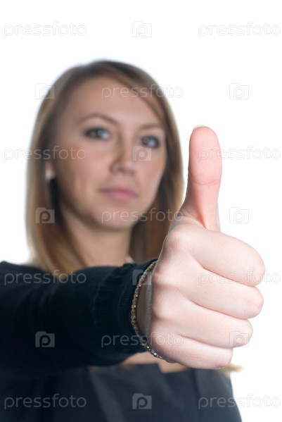 Женщина с большим пальцем вверх. Сосредоточьтесь на пальце