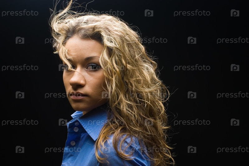Портрет молодой красивой женщины над черным