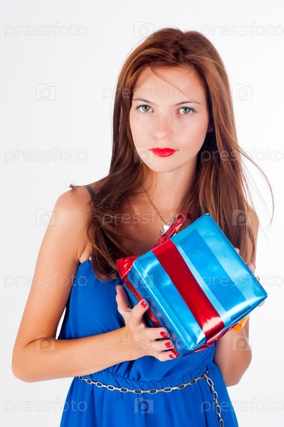 Счастливая женщина с подарочной коробкой