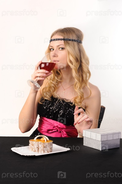 Красивая молодая женщина пьет красное вино