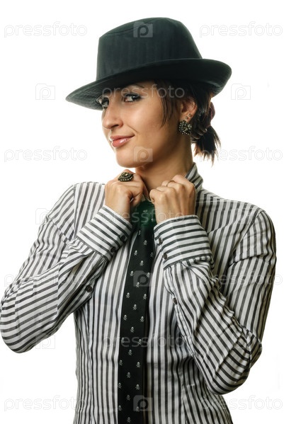 Красивая брюнетка в шляпе. Изолированные над белым