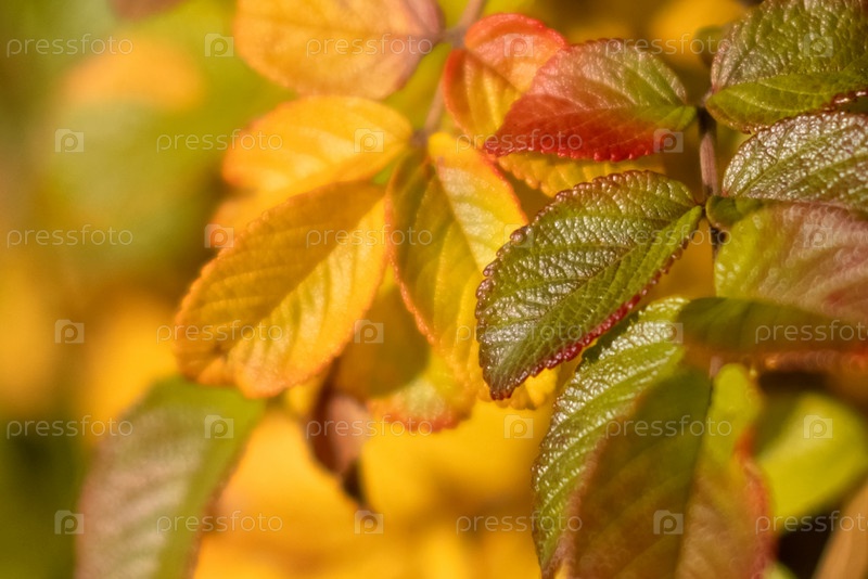 Красочные желтые, красные и зеленые листья шиповника в осенний сезон