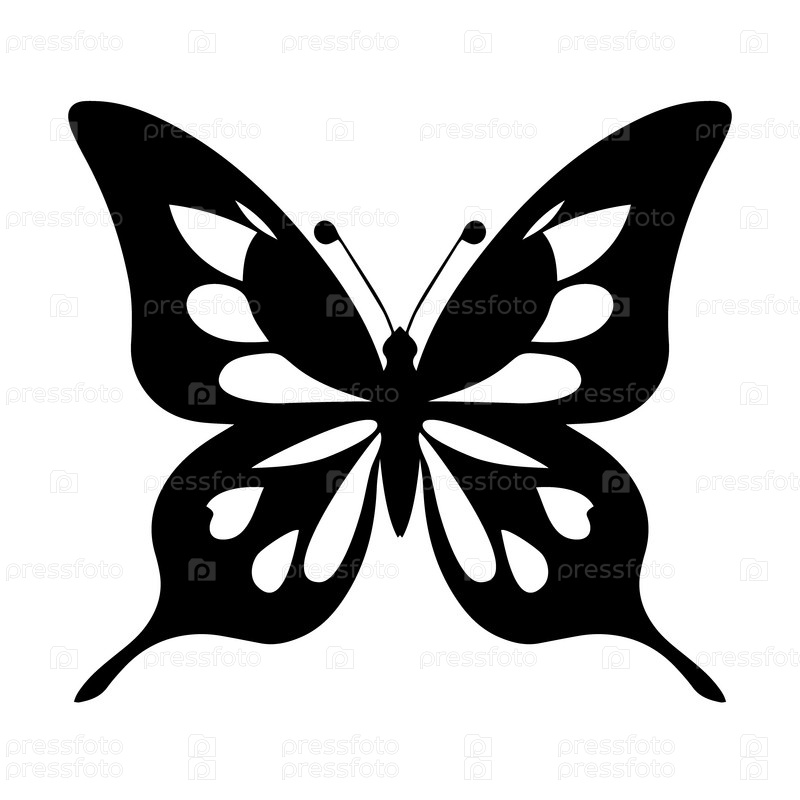 Черный силуэт бабочки на белом фоне