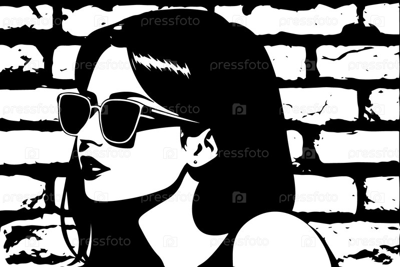 Красивая девушка в солнечных очках на фоне кирпичной стены, векторная иллюстрация