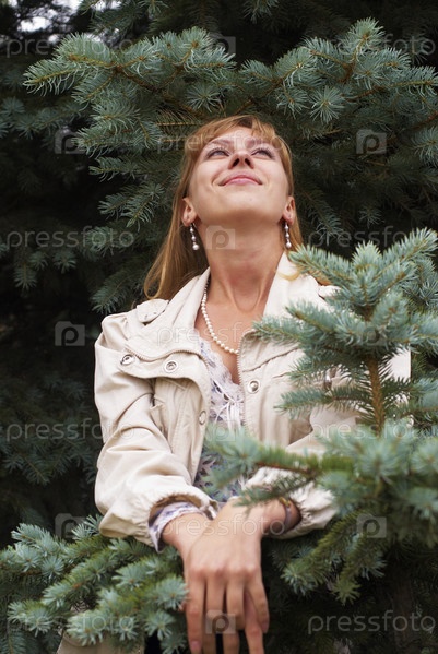 Молодая красивая женщина на фоне городского парка
