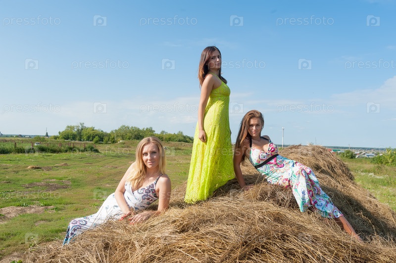 Молодые красивые женщины на сене