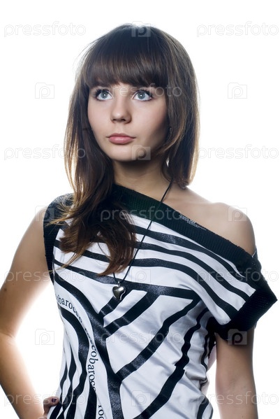 Портрет привлекательной молодой женщины на белом фоне