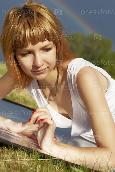 Привлекательная девушка и радуга