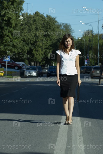 Бизнес как дорога. Деловая женщина, идущая по центральной линии дороги