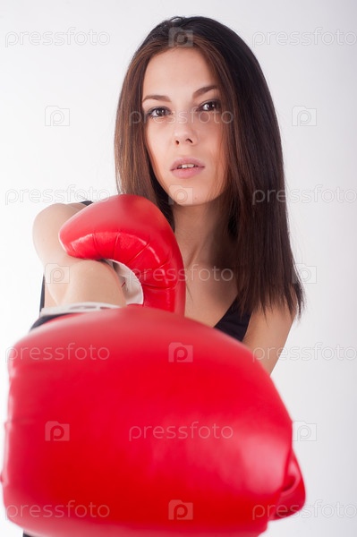 Красивая девушка в боксерских перчатках