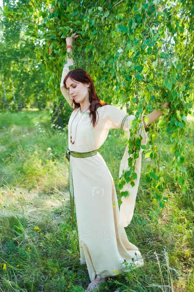 Привлекательная женщина с венком из цветов. Празднование Ивана Купалы