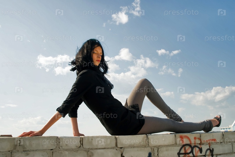 Молодая женщина отдыхает на крыше жилого дома в летний день