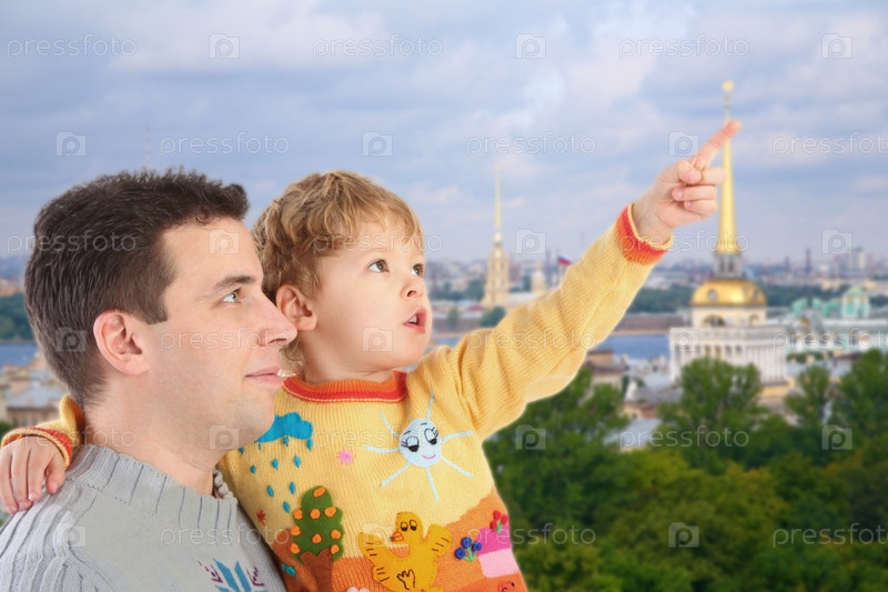 Отец с сыном в историческом центре Санкт-Петербурга, коллаж