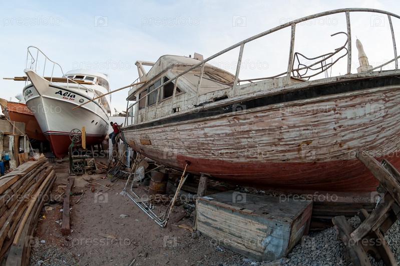 Парковка старой туристической яхты в порту Хургады
