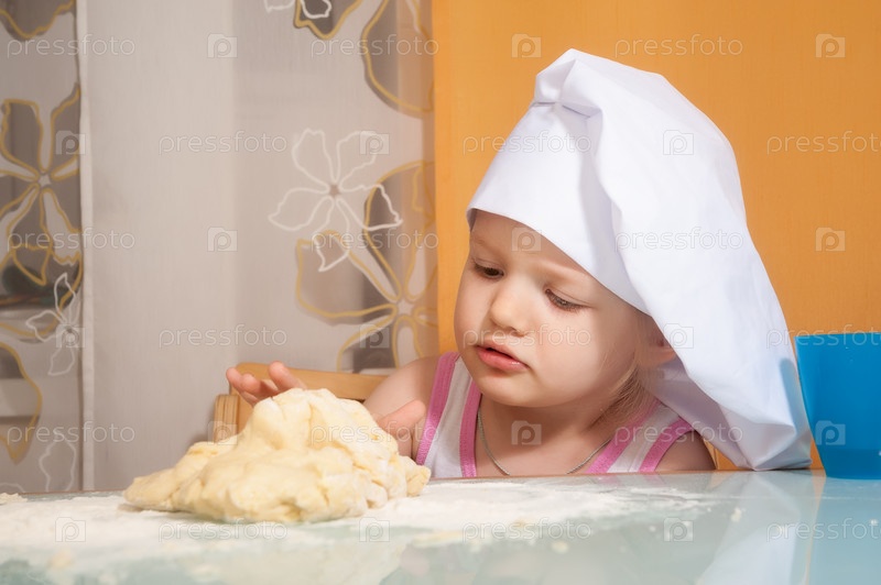 Привлекательная маленькая кухарка лепит печенье из теста