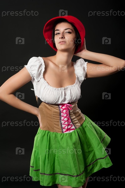 Красивая девушка в немецком стиле с красной шляпой