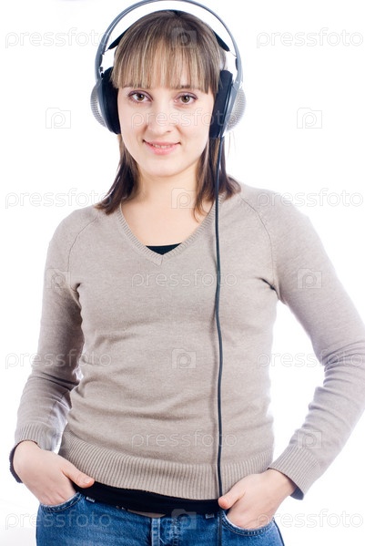 Красотка слушает музыку