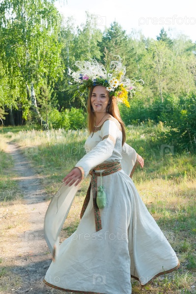 Привлекательный женский портрет с венком из цветов. Празднование Ивана Купалы