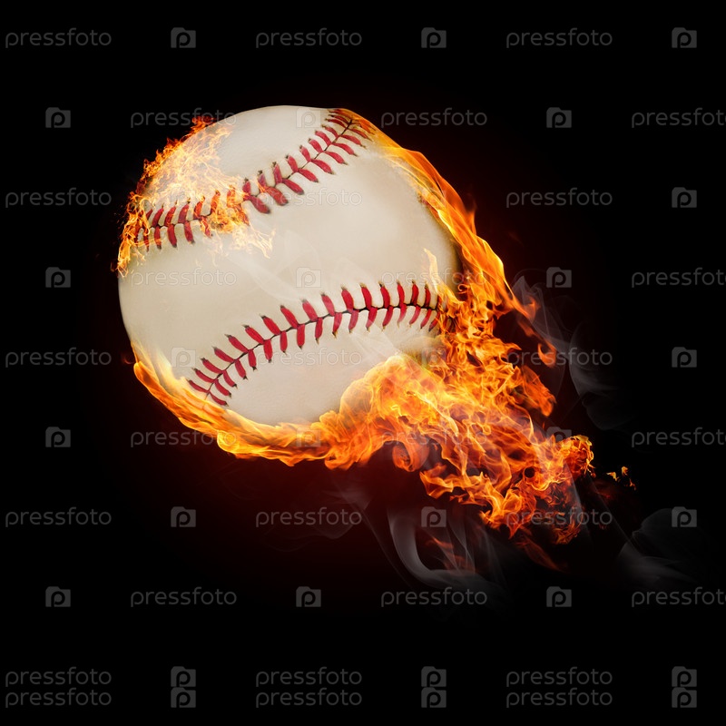 Летящий бейсбольный мяч в огне