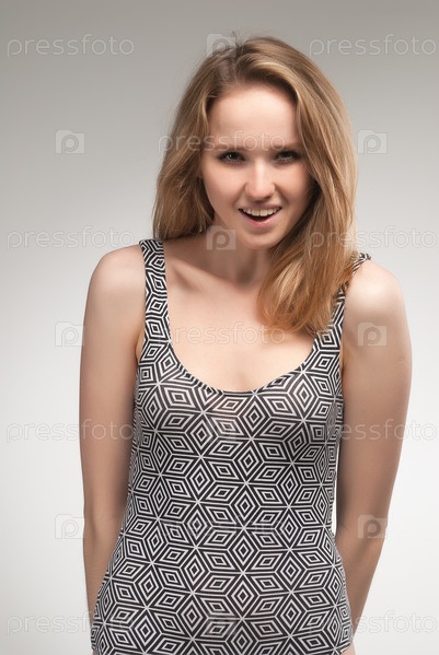 Портрет красивой молодой радостной женщины на белом фоне