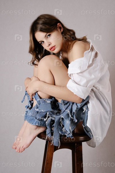 Женщина в рваных джинсах
