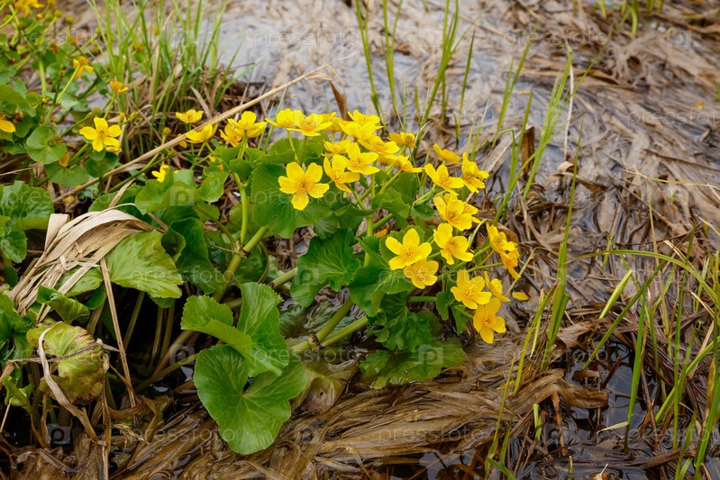 Календула болотная, Caltha palustris в цвете
