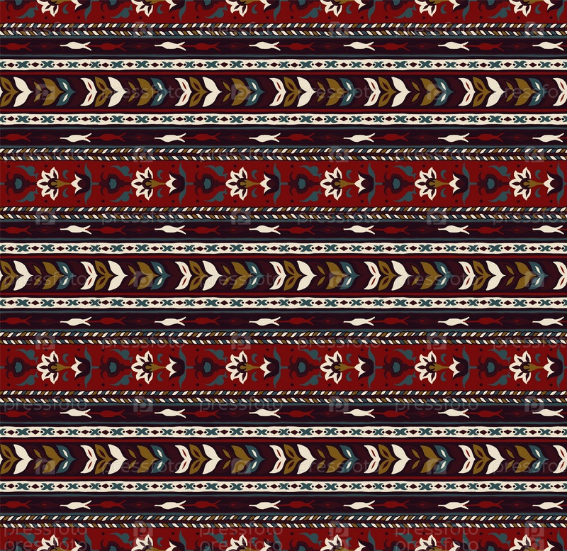 Геометрический фольклорный орнамент икат. Племенная этническая векторная текстура. Бесшовный полосатый узор в стиле ацтеков. Рисунок племенной вышивки. Индийский, скандинавский, цыганский, мексиканский, народный узор