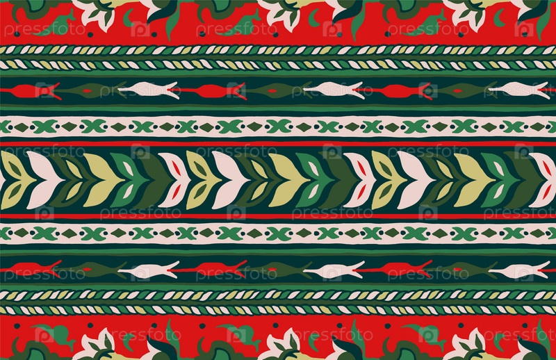 Геометрический фольклорный орнамент икат. Племенная этническая векторная текстура. Бесшовный полосатый узор в стиле ацтеков. Рисунок племенной вышивки. Индийский, скандинавский, цыганский, мексиканский, народный узор