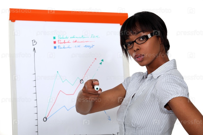 Красивая бизнес-леди делает презентациию
