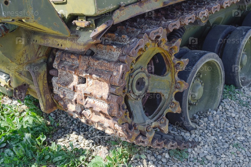 Гусеничная цепь старого танка. Музей военной техники под открытым небом