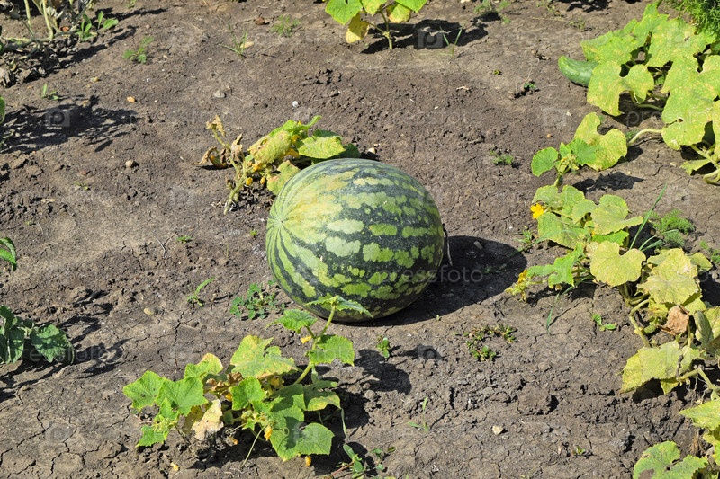 Растущий арбуз в поле