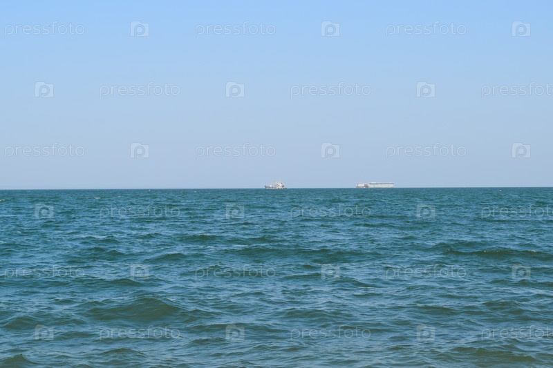 Морской пейзаж и два корабля на горизонте