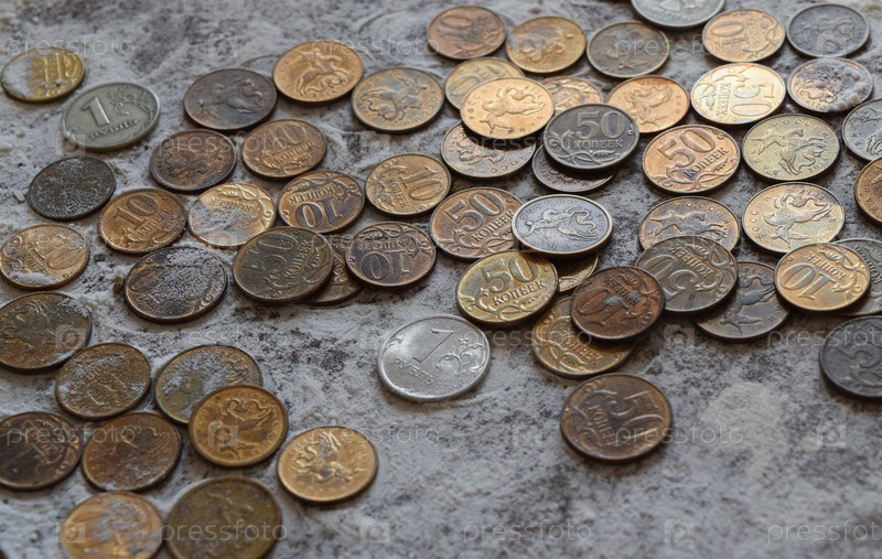 Монеты в муке на балансе. Рубли и копейки