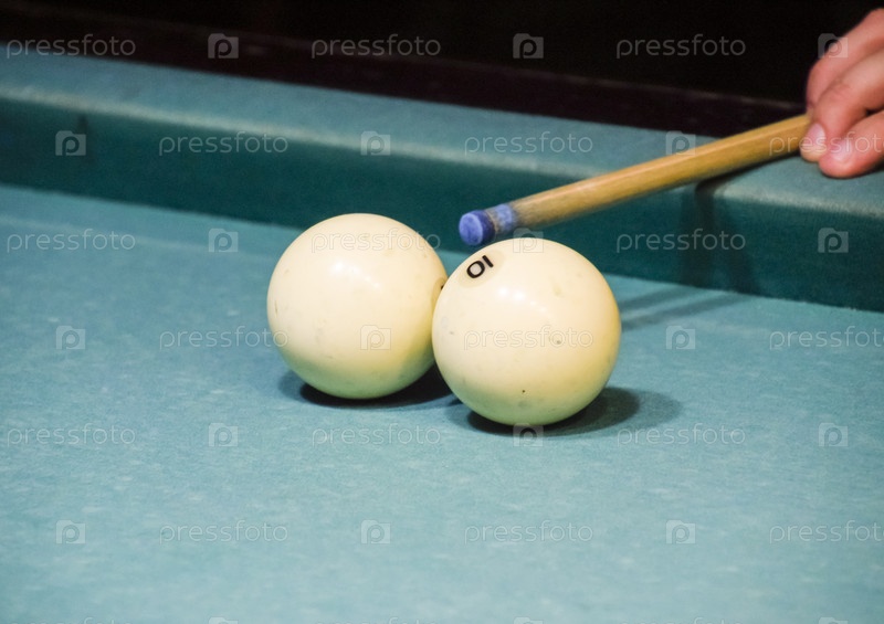 Бильярд, бильярдный стол. Нацеливание кия на мяч для чертенка
