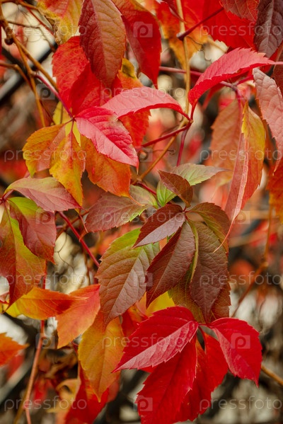 Осенние красные листья дикого винограда на естественном фоне осеннего сезона