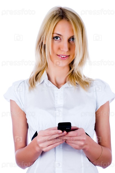 Молодая красивая женщина с мобильным телефоном