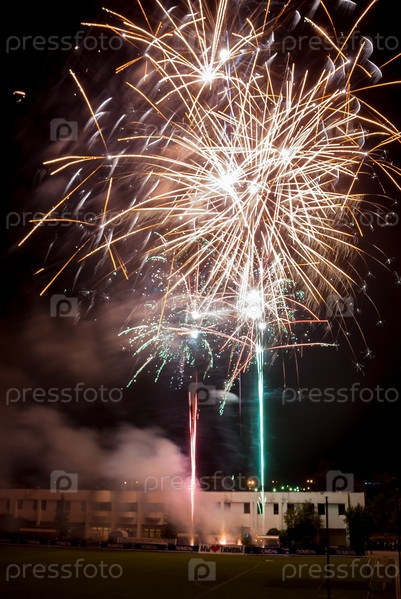 Красочный фестивальный фейерверк на стадионе