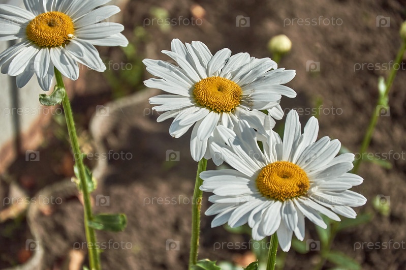 Белые ромашки в саду. Выборочный фокус. Размытый фон