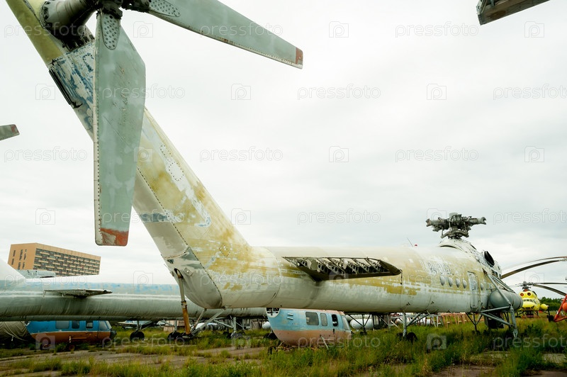 Тюмень, Россия - 19 июня 2019 г.: Авиаремонтный вертолетный завод "ЮТэйр Инжиниринг". Старый вертолет МИ-10К