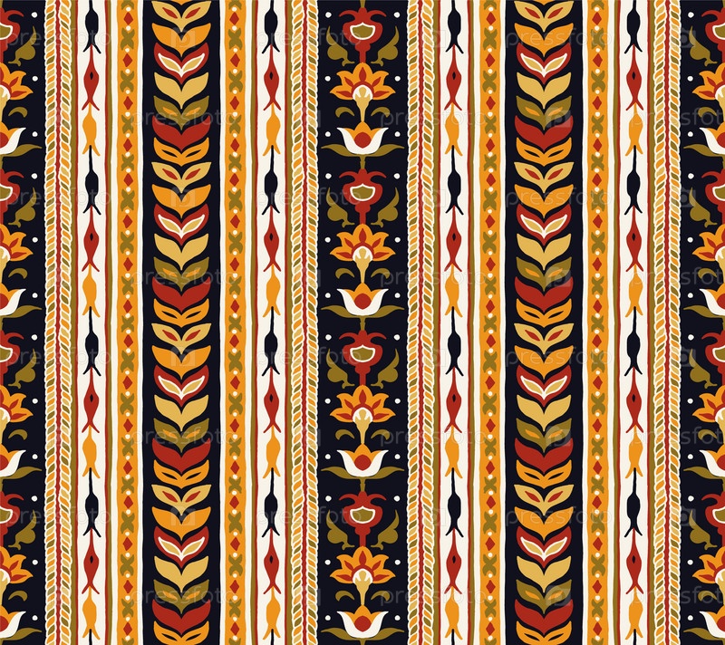 Геометрический дамасский орнамент. Икат границы. Этническая вышивка с листьями и монограммами. Племенная векторная текстура. Бесшовный народный узор в ацтекском стиле. Индийский, скандинавский, цыганский, мексиканский, африканский ковер