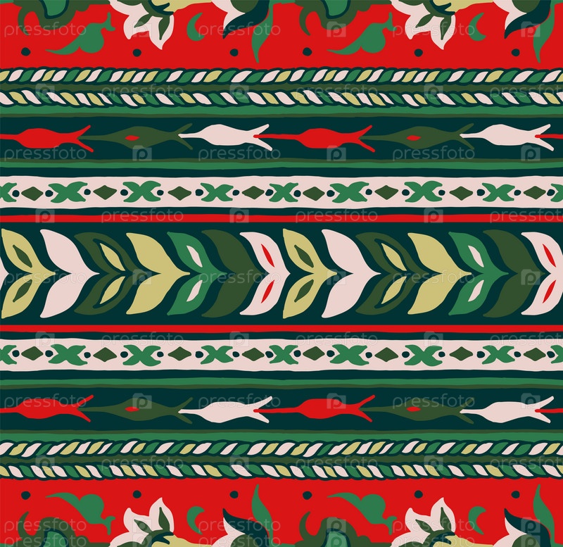 Геометрический фольклорный орнамент икат. Племенная этническая векторная текстура. Бесшовный полосатый узор в стиле ацтеков. Рисунок племенной вышивки. Индийский, скандинавский, цыганский, мексиканский, народный узор
